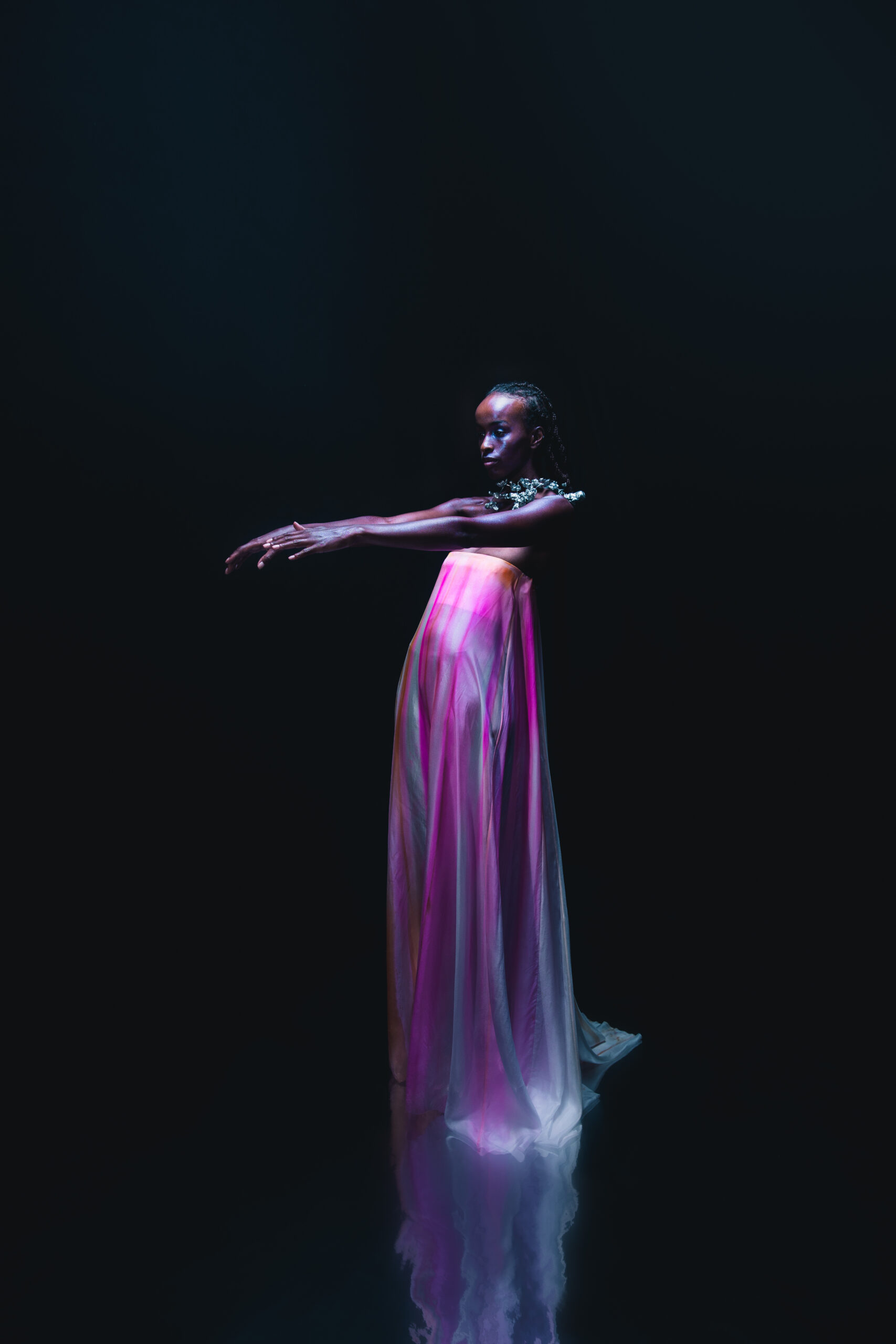 Berlin-based fashion designer, Elodie Carstensen, will be sharing the latest in her expanding universe of fashion this year at Berlin fashion week. The designer’s most recent collection, “Absence of Promised Safety”, comprises of ice-dyed, 100% sandwashed silk garments. At first glance, the collection is flowing and colorful. Upon closer inspection, certain pieces begin to stand out as structured, geometric, and powerful garments disguised in elegant silk and stunning pinks and oranges.