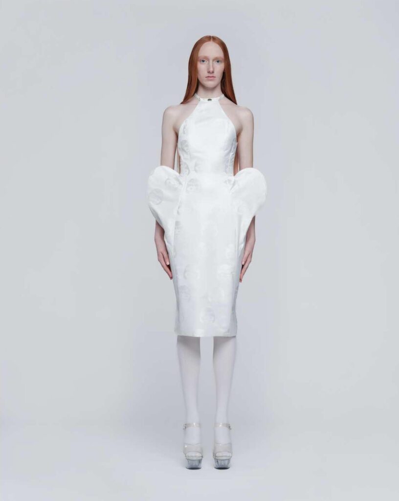 In line with a commitment to sustainability, HISU PARK prioritizes environmental consciousness by using deadstock fabrics, reducing waste by repurposing materials that would otherwise go to landfills. The brand’s 2025 collection, titled It’s Me, delves into themes of healing, personal growth, anxiety, and OCD. Through inventive fabric manipulation and strong silhouettes, inner thoughts and emotions are woven into each piece, with abstract representations of compulsive behaviors adding depth to the aesthetic. This approach makes fashion a medium for expressing complex, often hidden experiences.