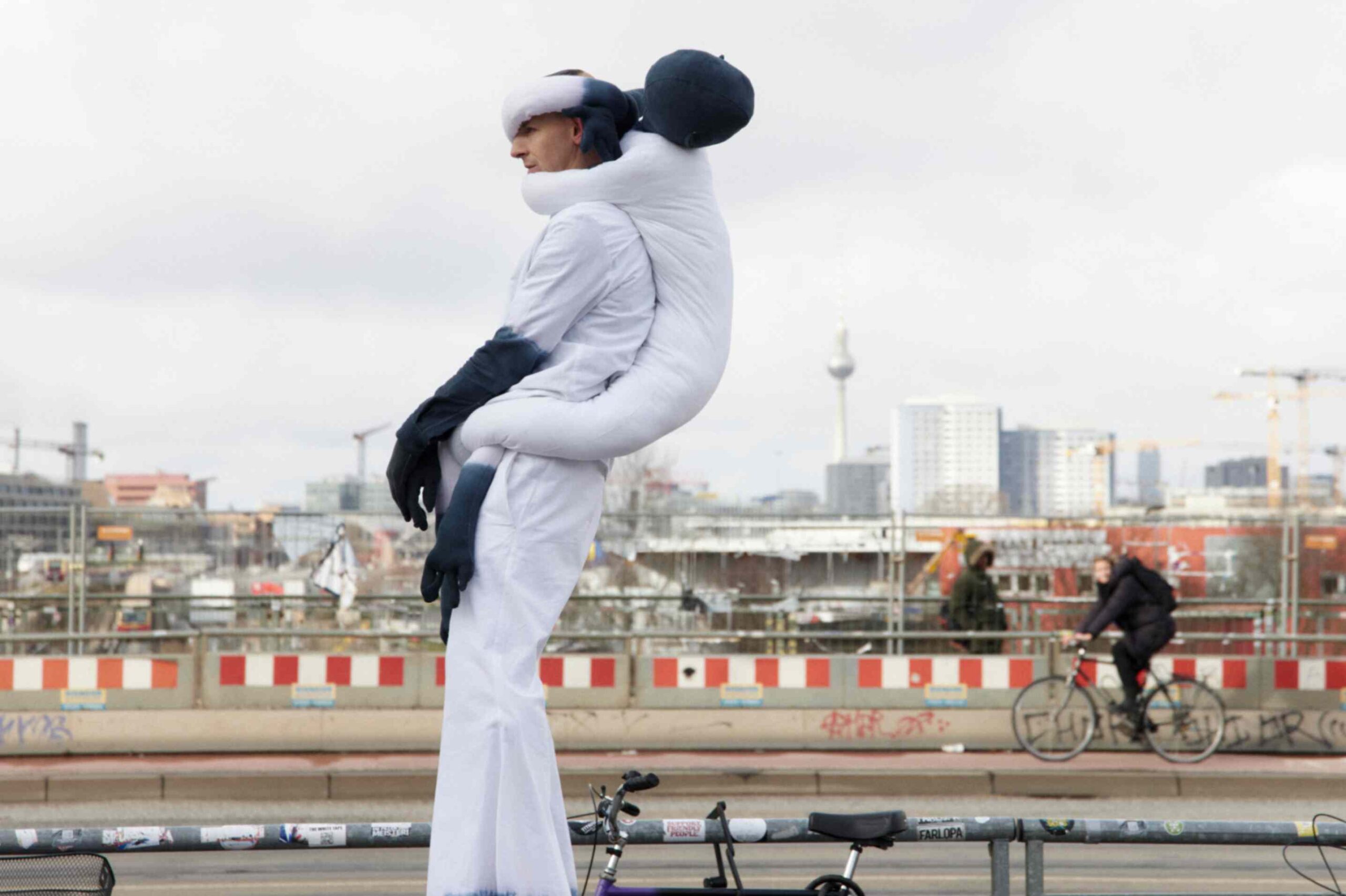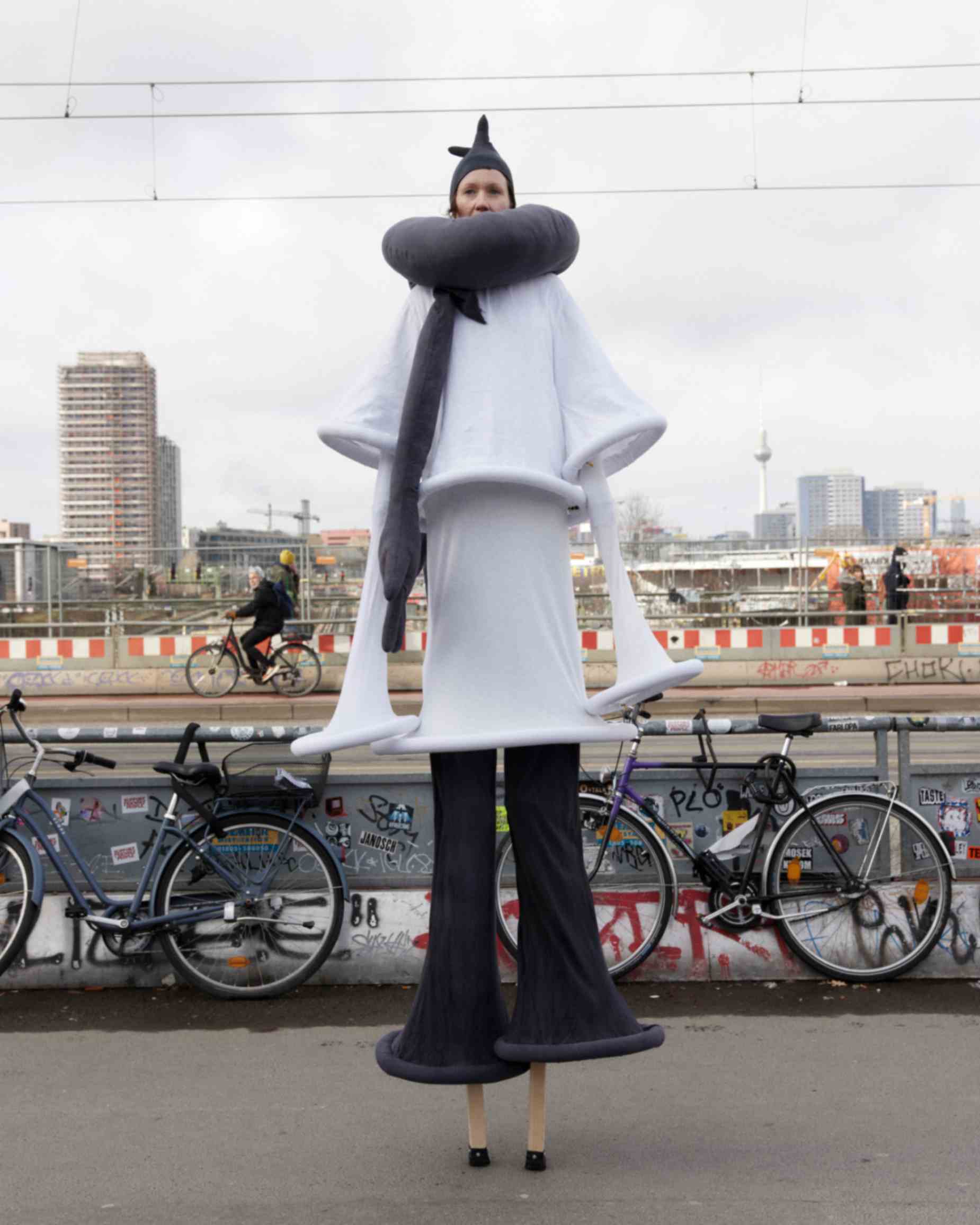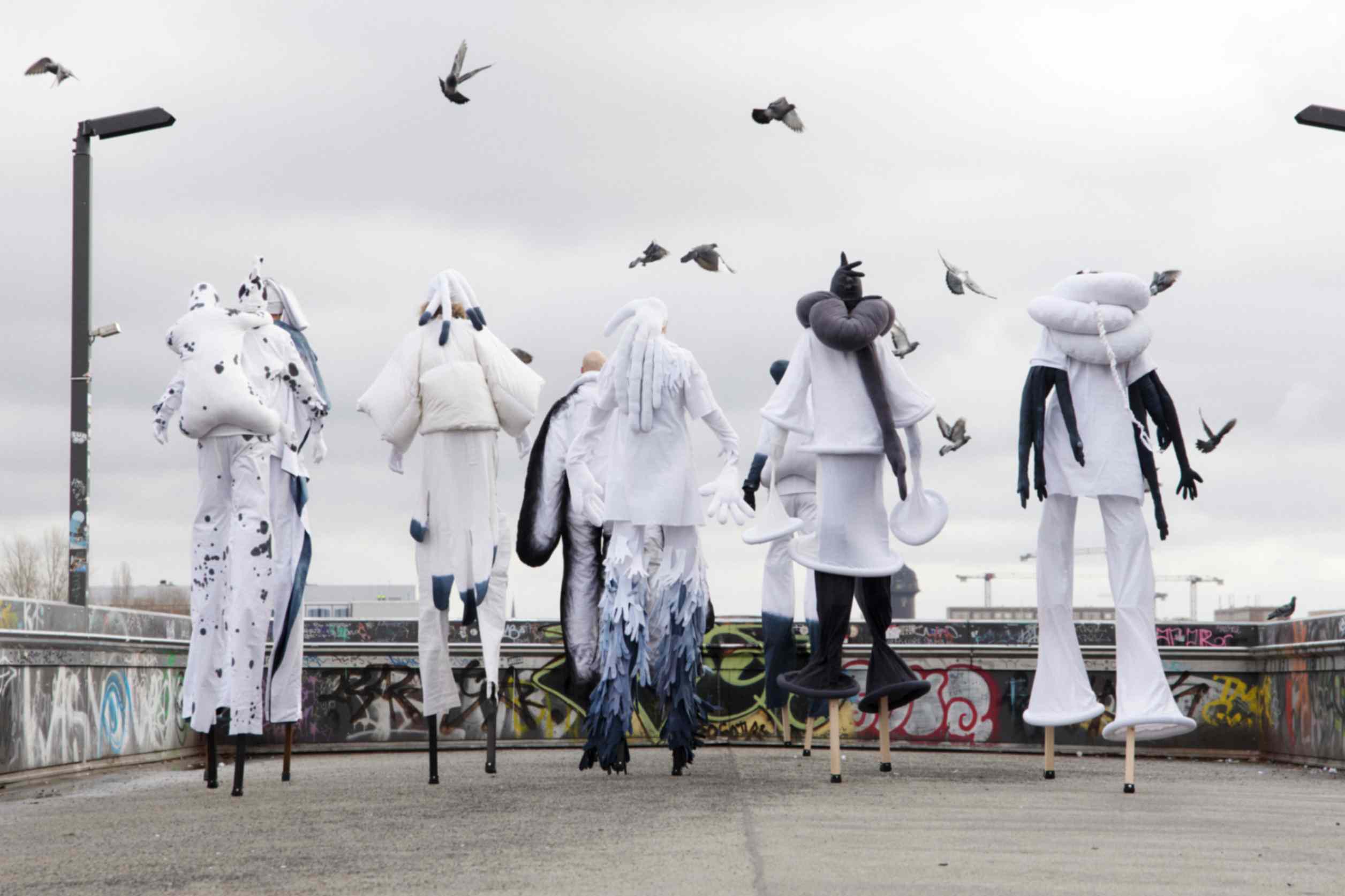 During Berlin Fashion Week 2025, the Fork and Knife collective presented FK B 5 STILTS – KOPF HOCH! (Look Up!)—a performance that redefined dimension, proportion, and perspective in an urban setting.