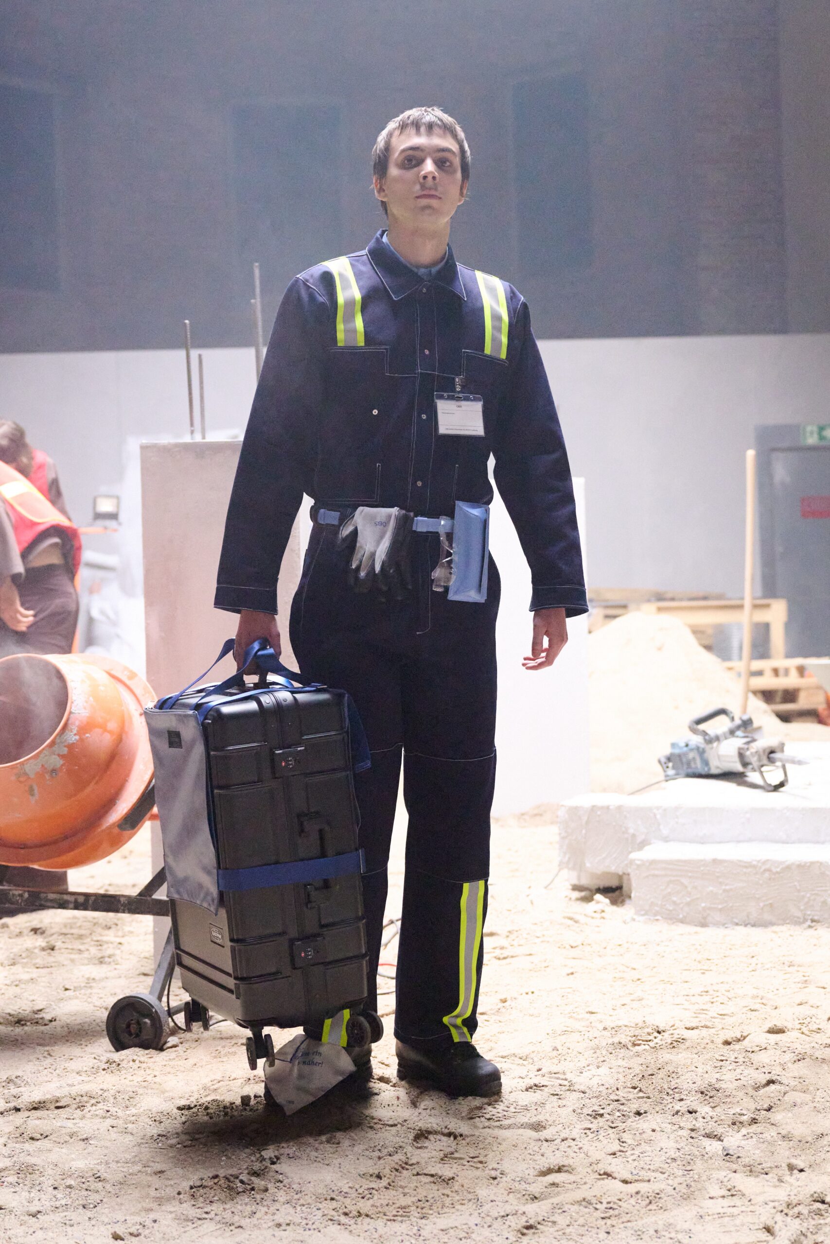 The runway, held at St. Elisabeth Church, contrasted historical architecture with avant-garde design. Models walked through the space, intensifying the tension between past and future. This dynamic setting reinforced the collection’s deeper message.