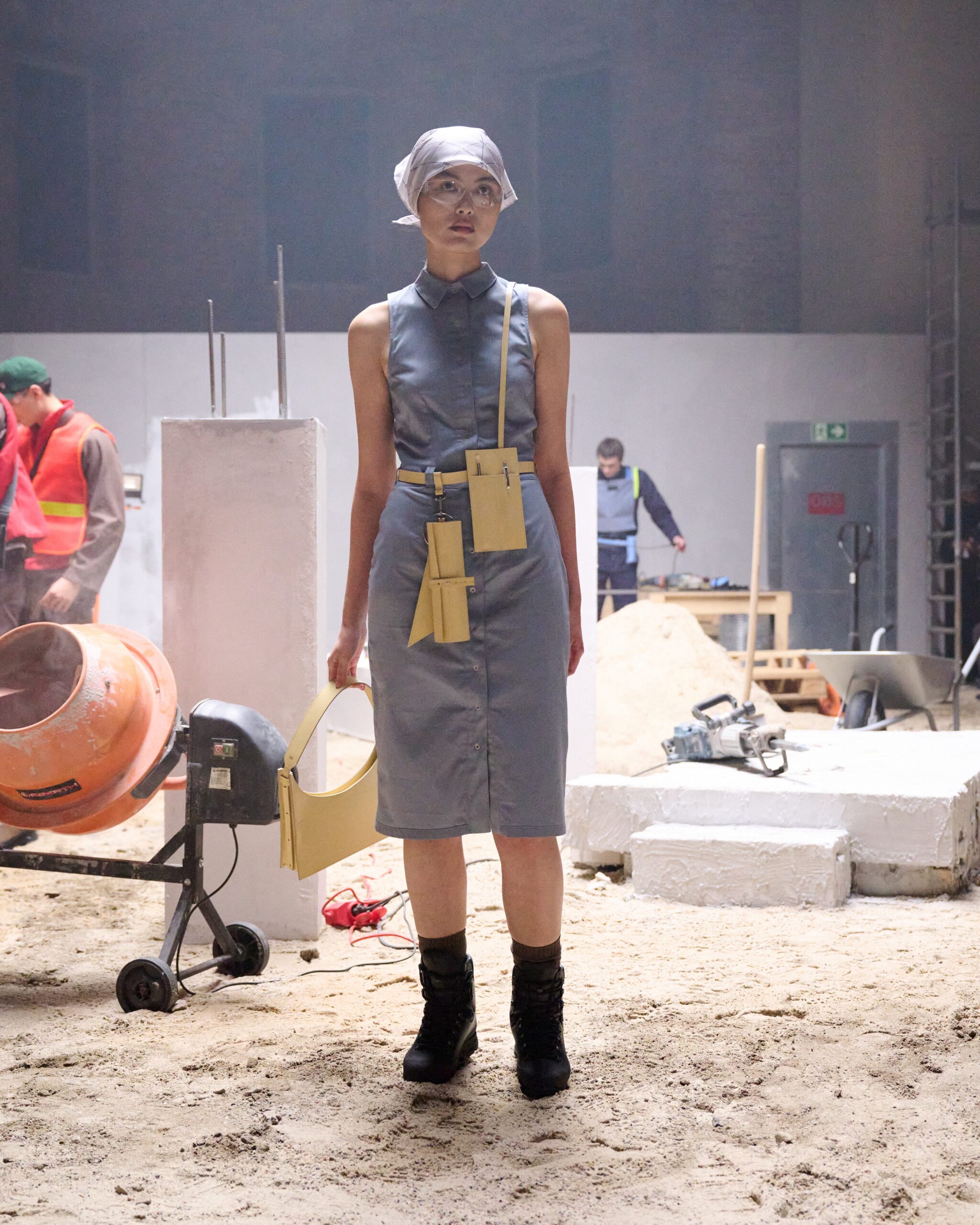 Moreover, OBS experimented with structure, featuring sculptural silhouettes, deconstructed layering, and raw textures that highlighted the material’s natural evolution.